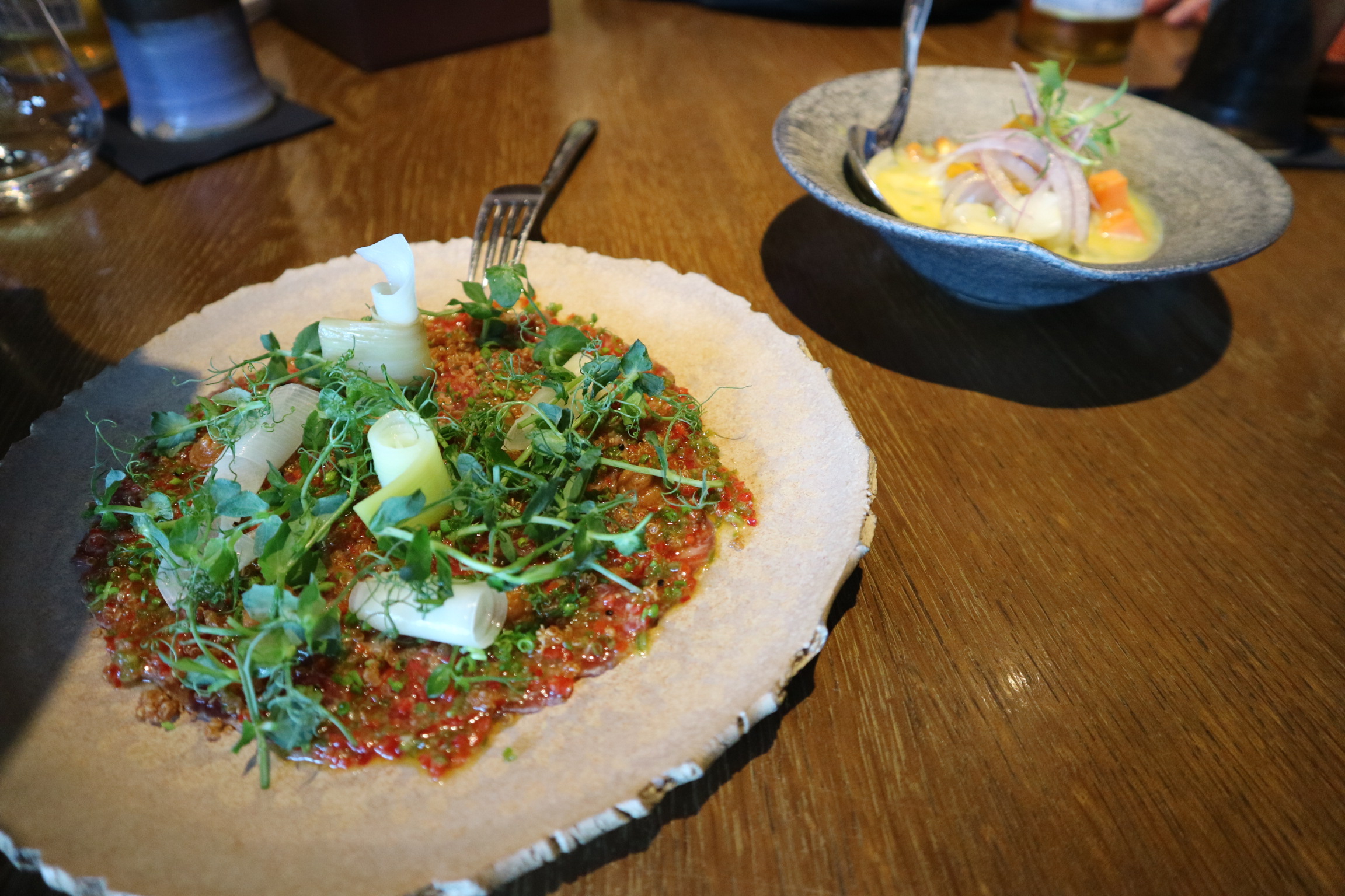 메인을 먹고 있었지만.... 비프 타다끼와 세비체가