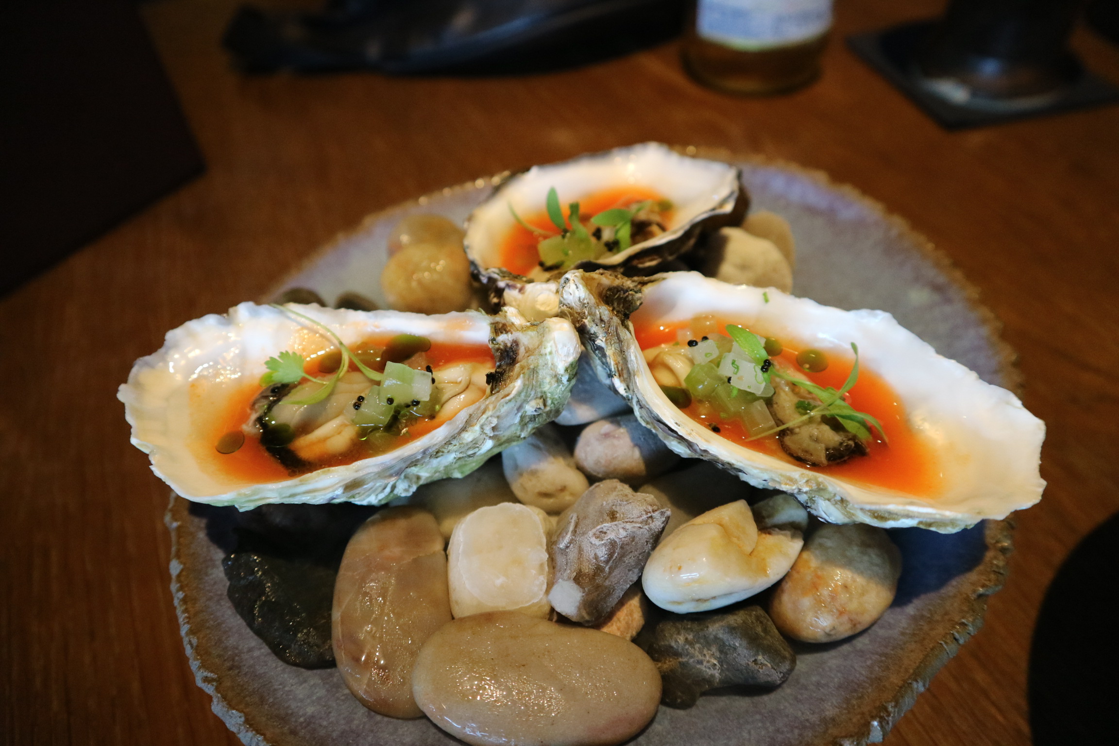 애피타이저로 시킨 맥주와 오이스터입니다.